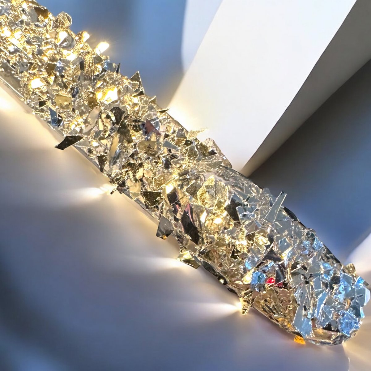 Crush Flakes – Mirror Silver consists of flakes with an intense, mirror-like silver finish that gives your nails a sparkling metallic effect. The shape is irregular and resembles crushed glass, which makes the light reflect at multiple angles – like a mosaic of mirror pieces.