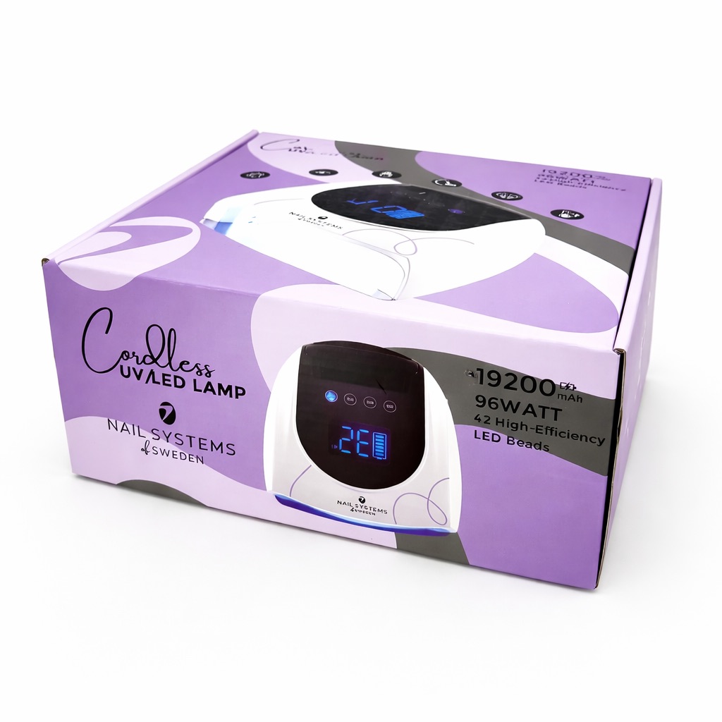 Nail Systems Cordless LED Lamp 96W är en uppladdningsbar LED-lampa framtagen för dig som vill kunna arbeta smidigt utan sladd, utan att kompromissa med kvalitet.