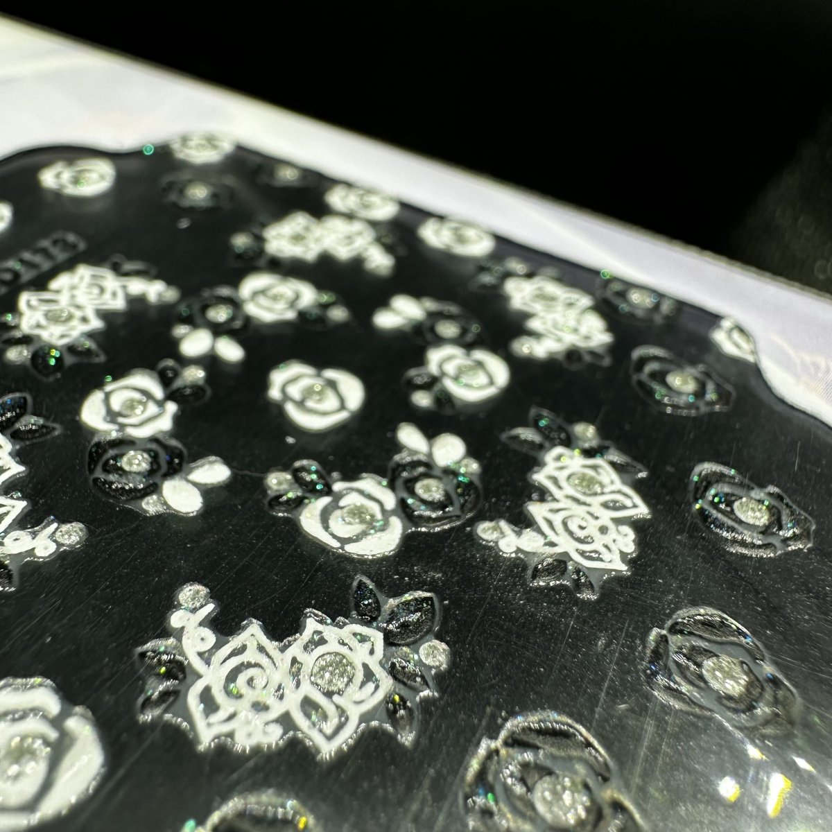 • Användning: Lyft motivet varsamt med pincett och placera där du vill ha det. Gnugga fast ordentligt så att inga kanter syns och förslut sedan med valfritt topplack.