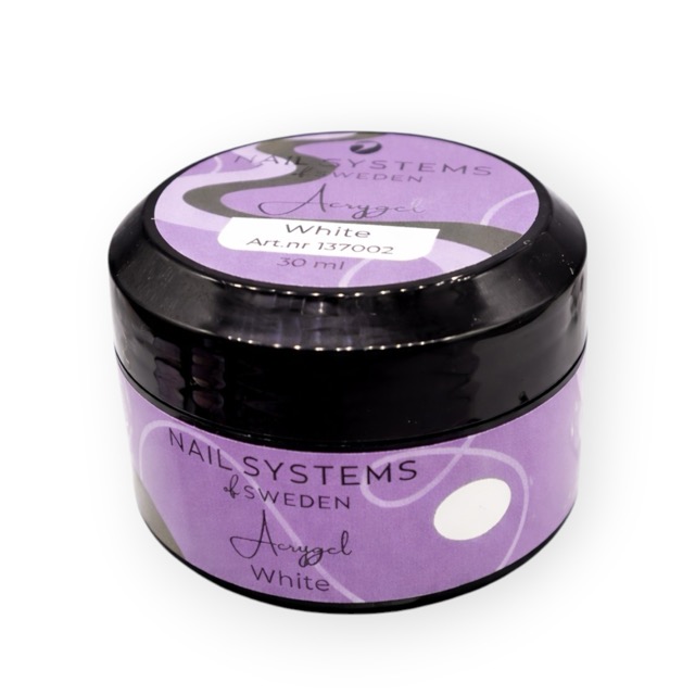 Vit acrygel utan bubblor eller skiftningar. Passar för fransk manikyr, babyboomer, förstärkning och förlängning med jämnt och täckande resultat.
